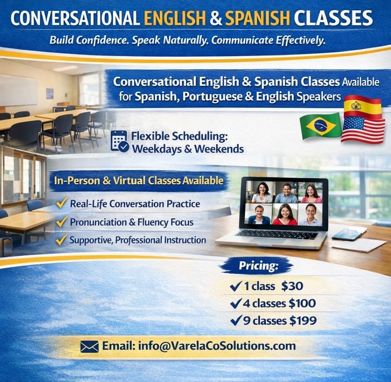 Practical English and Spanish conversation classes